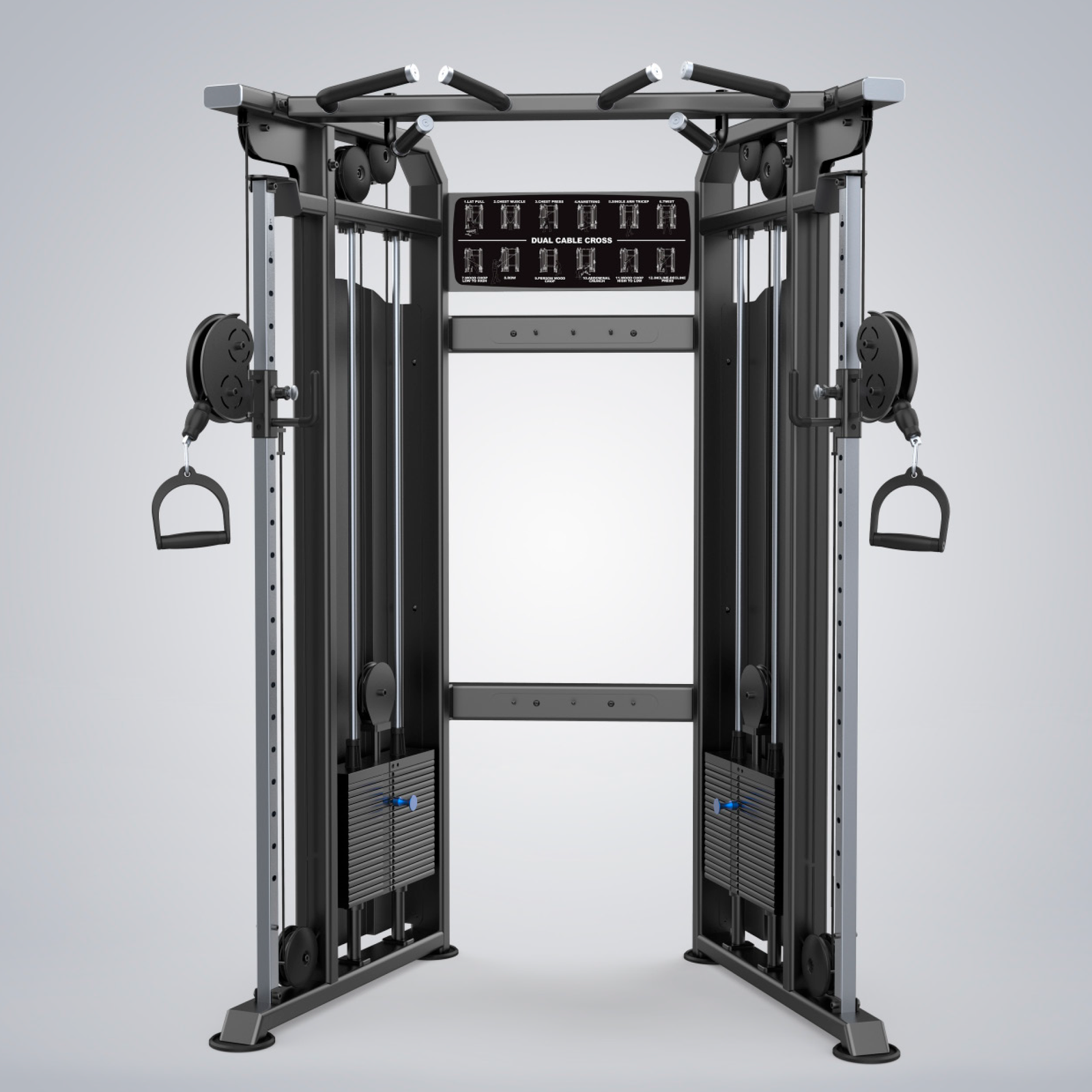 O DHZ Functional Trainer foi projetado para fornecer uma variedade quase ilimitada de exercícios em um único espaço, que é um dos equipamentos mais populares da academia. Ele não só pode ser usado como um dispositivo independente, mas também pode ser usado para complementar os tipos de exercícios existentes. 16 posições de cabo selecionáveis ​​permitem que os usuários realizem uma variedade de exercícios. Pilhas duplas de peso de 95 kg fornecem carga suficiente até mesmo para levantadores experientes.